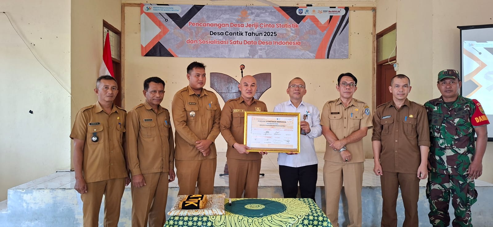 Kegiatan dilanjutkan dengan penandatanganan piagam komitmen bersama dan sesi foto bersama, sebagai simbol kolaborasi dan keseriusan seluruh pihak terhadap program Desa Cinta Statistik.
