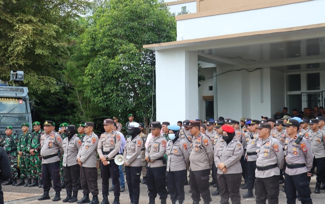 TROPEDO.ID — Ratusan personel gabungan TNI-Polri bersama Satpol PP Kabupaten Bangka Selatan dikerahkan untuk mengamankan aksi damai yang digelar masyarakat di depan Kantor DPRD Kabupaten Bangka Selatan, Jumat (5/9/2025).