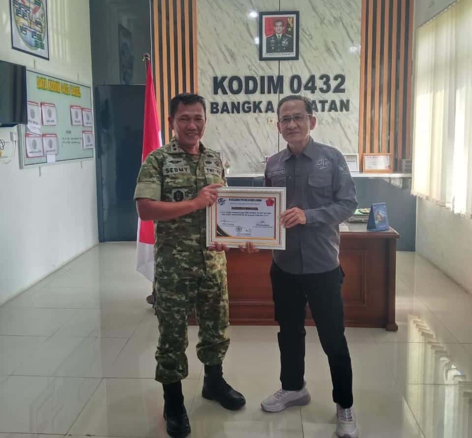 PJS Babel Serahkan Penghargaan ke Kodim 0432/Basel: TNI dan Pers Satu Tekad Jaga Demokrasi