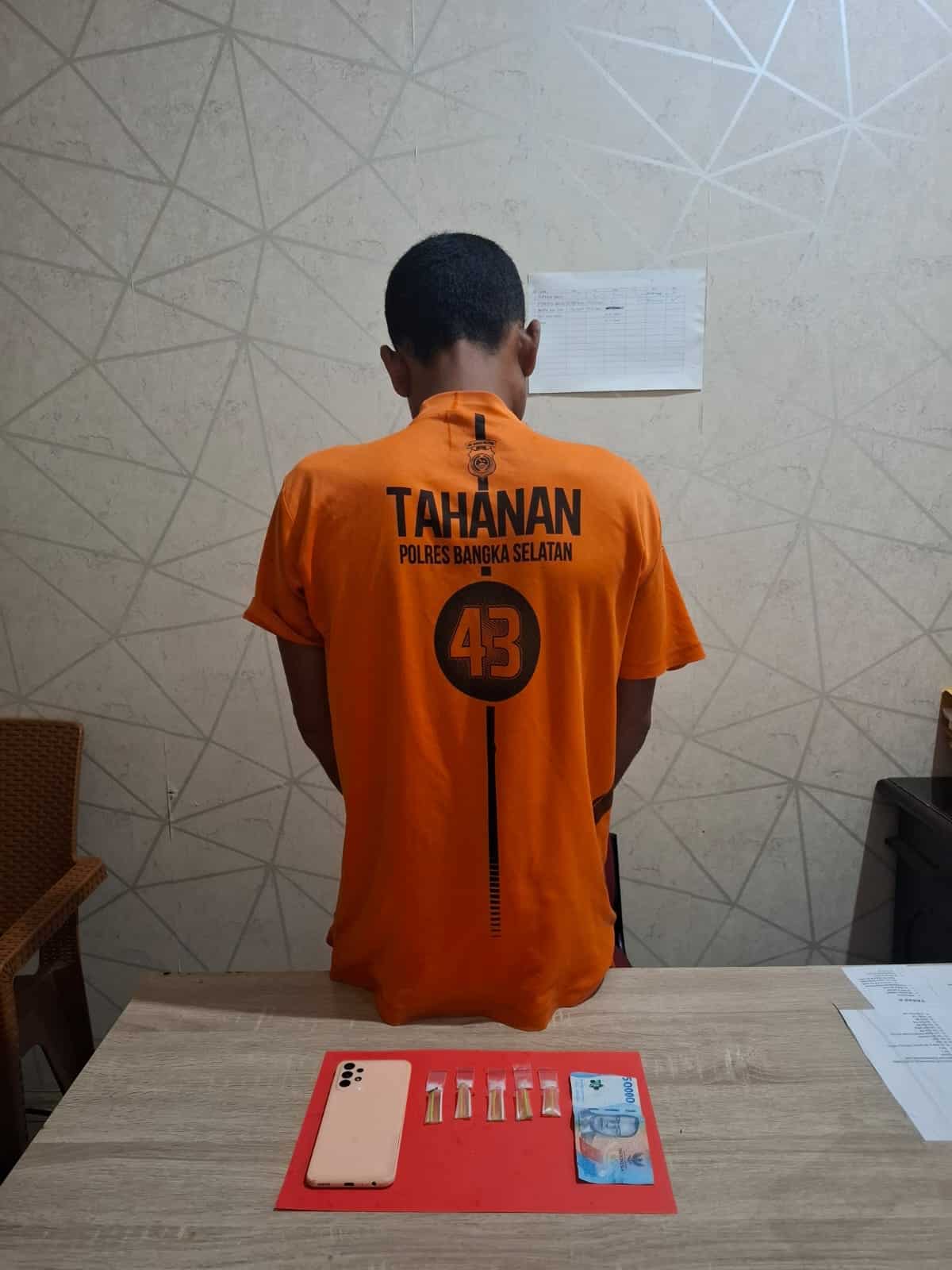 Penangkapan dilakukan sekitar pukul 00.05 WIB di kebun sawit Desa Penutuk, Kecamatan Lepar Pongok, Kabupaten Bangka Selatan. Dari tangan tersangka, polisi mengamankan narkotika jenis sabu dengan berat bruto 1,58 gram, yang diduga siap diedarkan. Selain itu, sejumlah barang bukti pendukung turut disita guna kepentingan penyidikan.