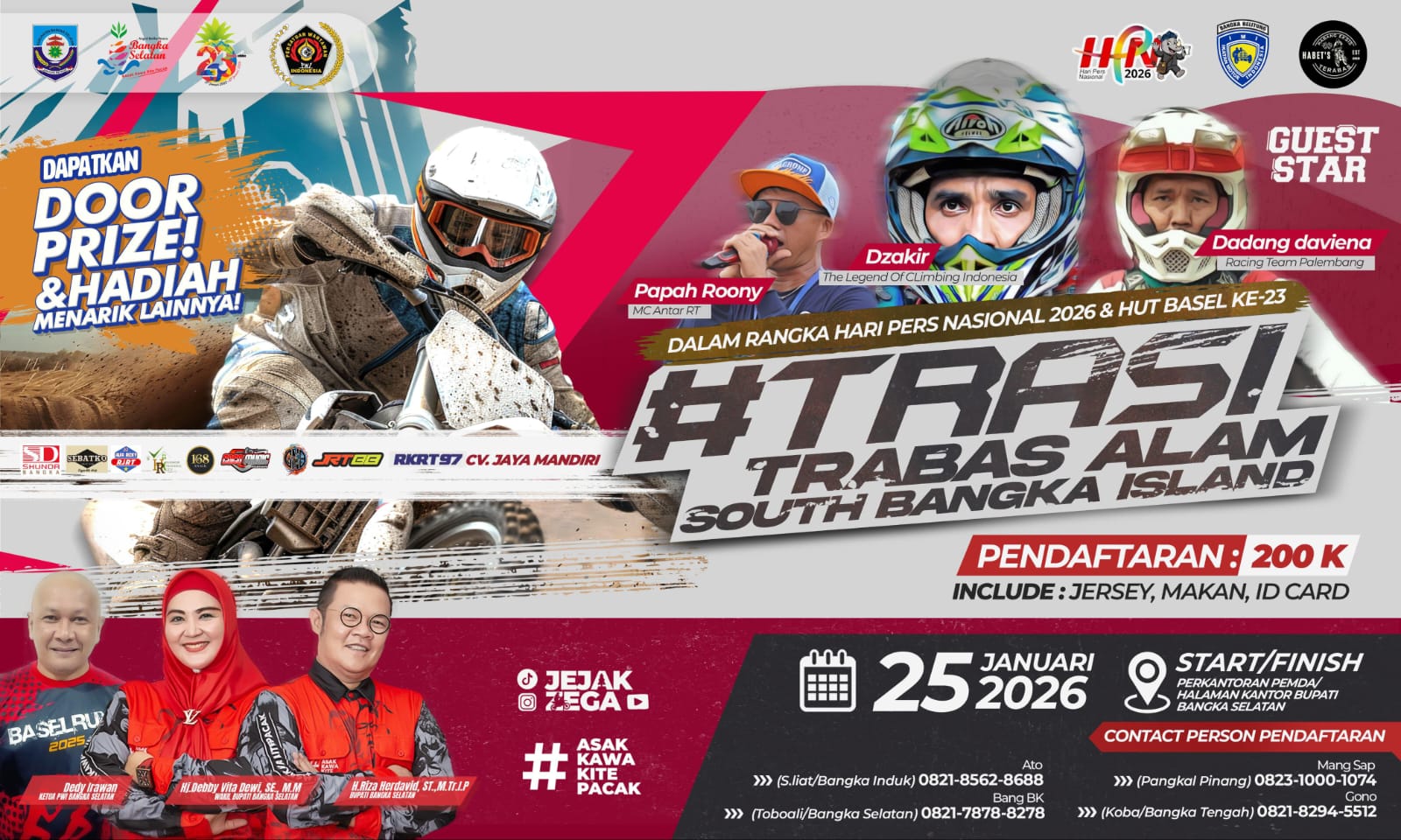 Event TRAS!! digelar sebagai bagian dari rangkaian Hari Pers Nasional (HPN) 2026 sekaligus agenda Basel Bekecak, yang menjadi program perayaan HUT Bangka Selatan. Hingga Senin (12/1/2026), panitia mencatat 200 off-roader telah resmi mendaftar dan jumlah tersebut diperkirakan terus bertambah hingga hari pelaksanaan.