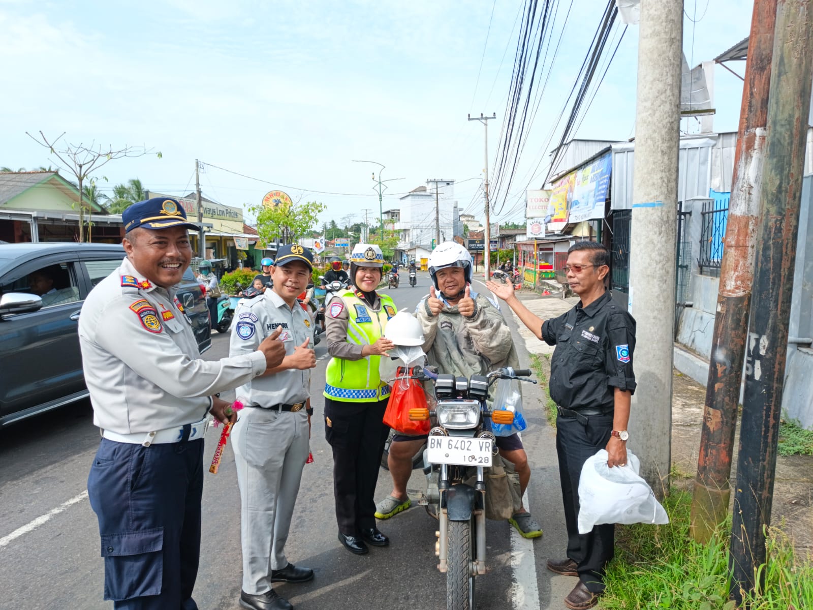 Satlantas Polres Basel Bagikan Helm dan Cokelat dalam Operasi Keselamatan Menumbing 2026